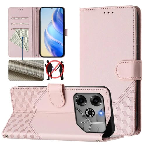 Funda de Cuero Rfid con Relieve En Panal para Tecno Pova 6 5G y 6 Pro 5G (Rosa)