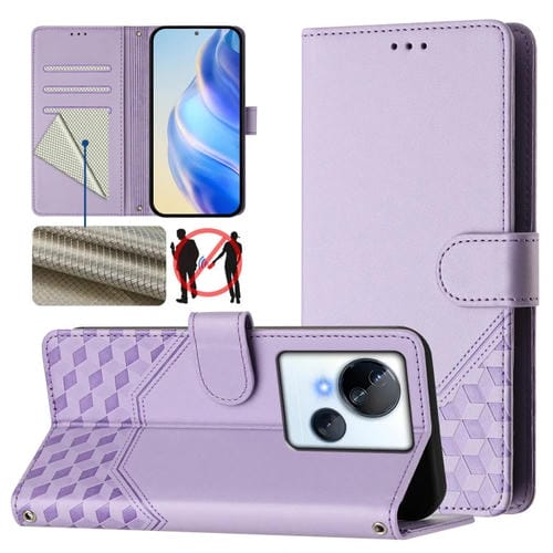 Funda de Cuero Rfid con Relieve En Panal para Tecno Spark 10 5G (Morado Claro)