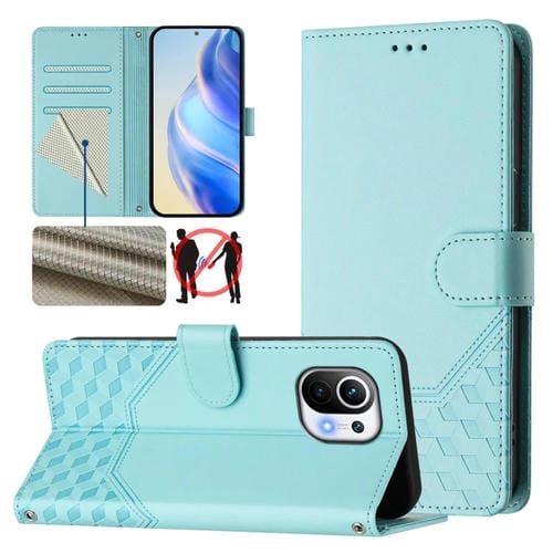 Funda de Cuero Rfid con Relieve En Panal para Xiaomi Mi 11 (Verde Menta)