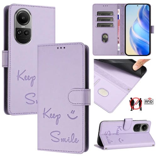 Funda de Cuero Rfid con Relieve Global Smile para Oppo Reno10/Reno10 Pro (Morado Claro)
