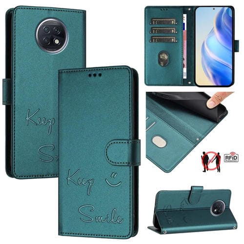 Funda de Cuero Rfid con Relieve Global Smile para Redmi Note 9T (Verde Pavo Real)