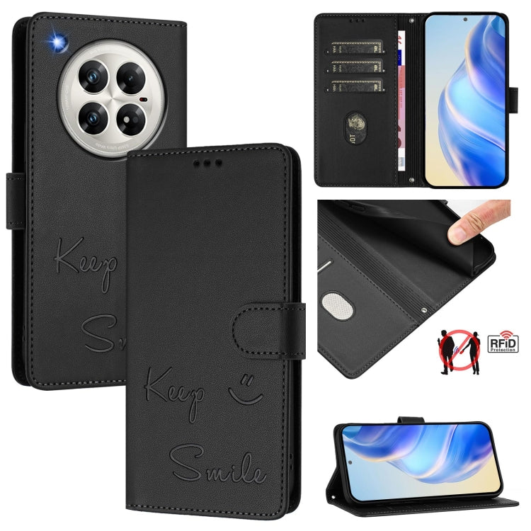 Funda de Cuero Rfid con Relieve Sonriente para Infinix Zero 40 4G/5G (Negra)