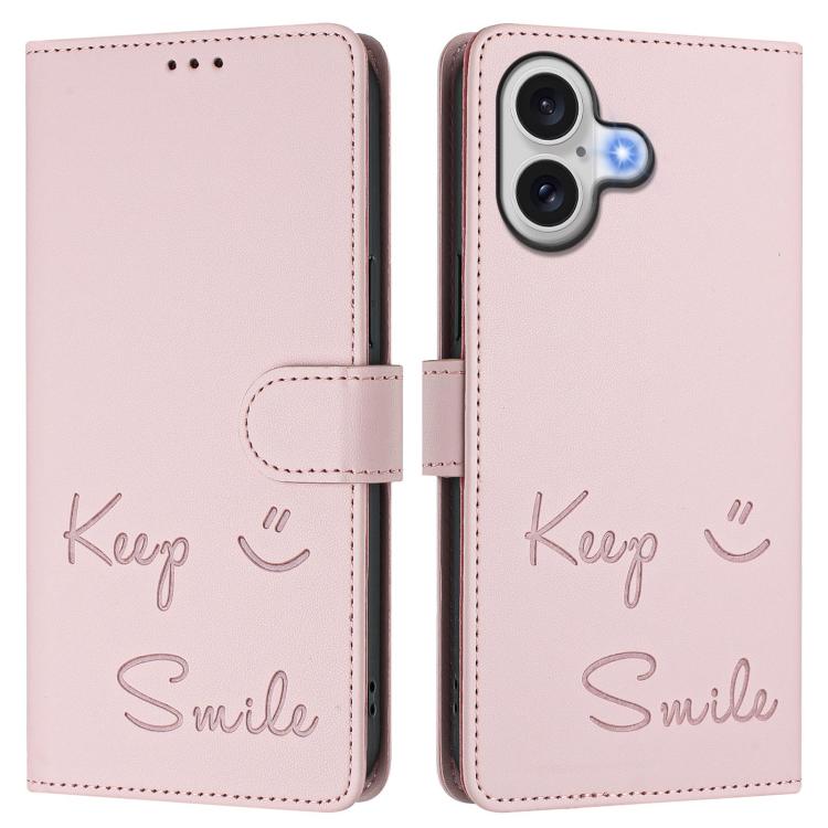 Funda de cuero RFID con relieve sonriente para iPhone 17 (rosa)