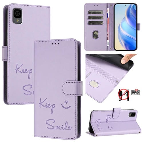 Funda de Cuero Rfid con Relieve Sonriente para TCL 30Z T602Dl (Morado Claro)