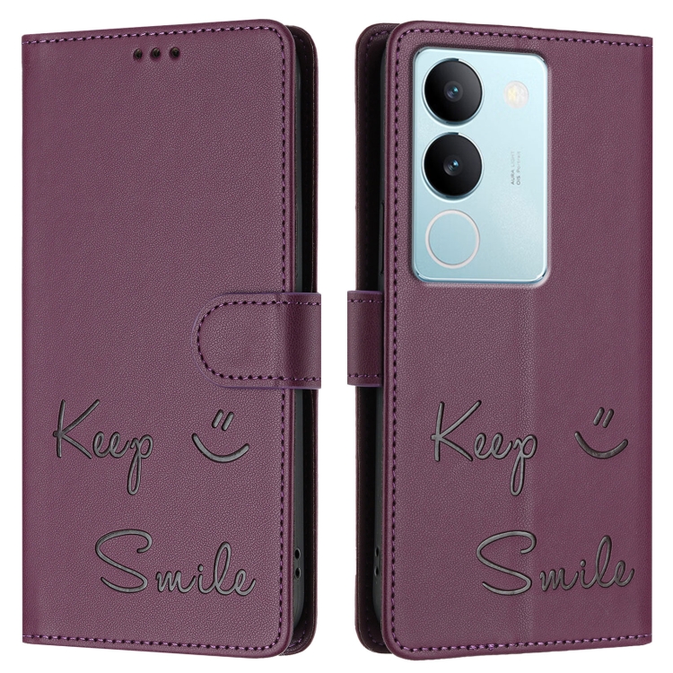 Funda de Cuero Rfid con Relieve Sonriente para Vivo V29 5G Global/V29 Pro (Violeta)