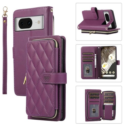 Funda Cuero Tipo Billetera con Cremallera Completa y Diseño Romboidal para Google Pixel 8A (Morado Oscuro)