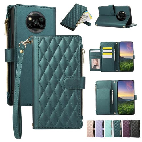 Funda de Cuero Tipo Billetera con Cremallera Rombal para Xiaomi Poco X3 Nfc (Verde)