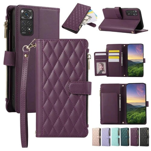 Funda de Cuero Tipo Billetera con Cremallera y Diseño Rombal para Redmi Note 11S (Morado Oscuro)