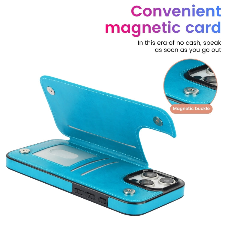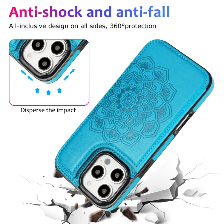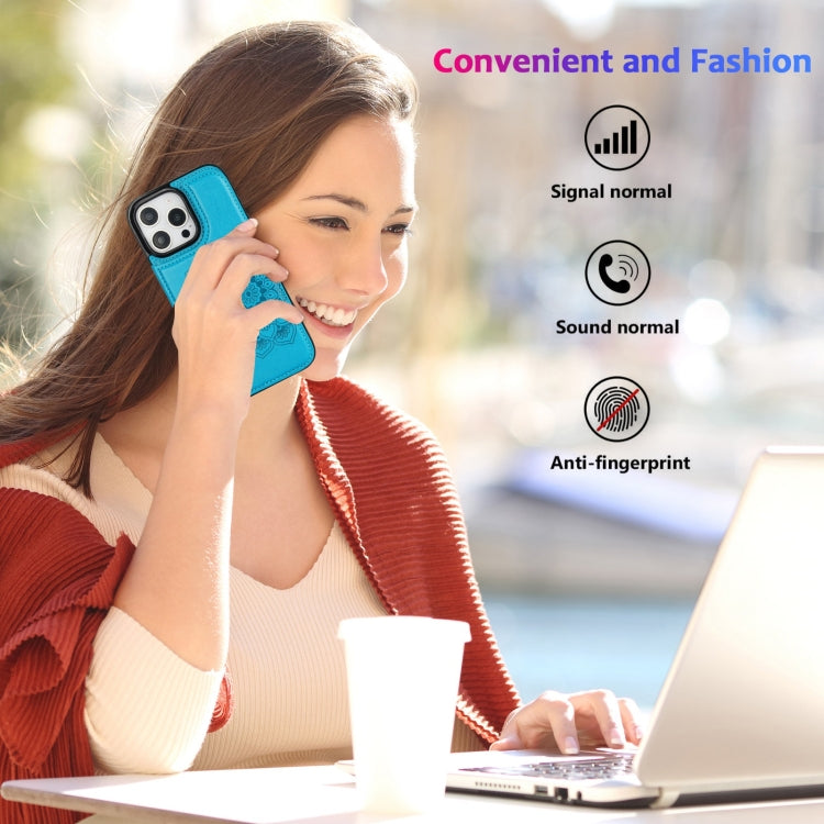 Funda Tipo Billetera Cuero Doble Hebilla Diseño Mandala iPhone 16 Pro (Azul)