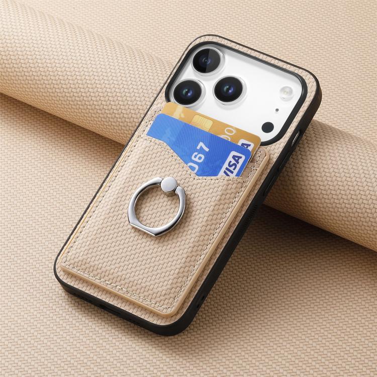 Funda de fibra de carbono con anillo para tarjeta para iPhone 17 Pro Max (caqui)
