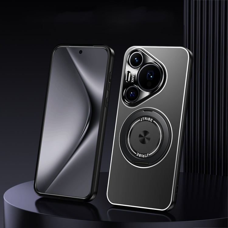 Funda de Metal Esmerilado con Soporte Giratorio para Huawei Pura 70 Pro+ (Negra)