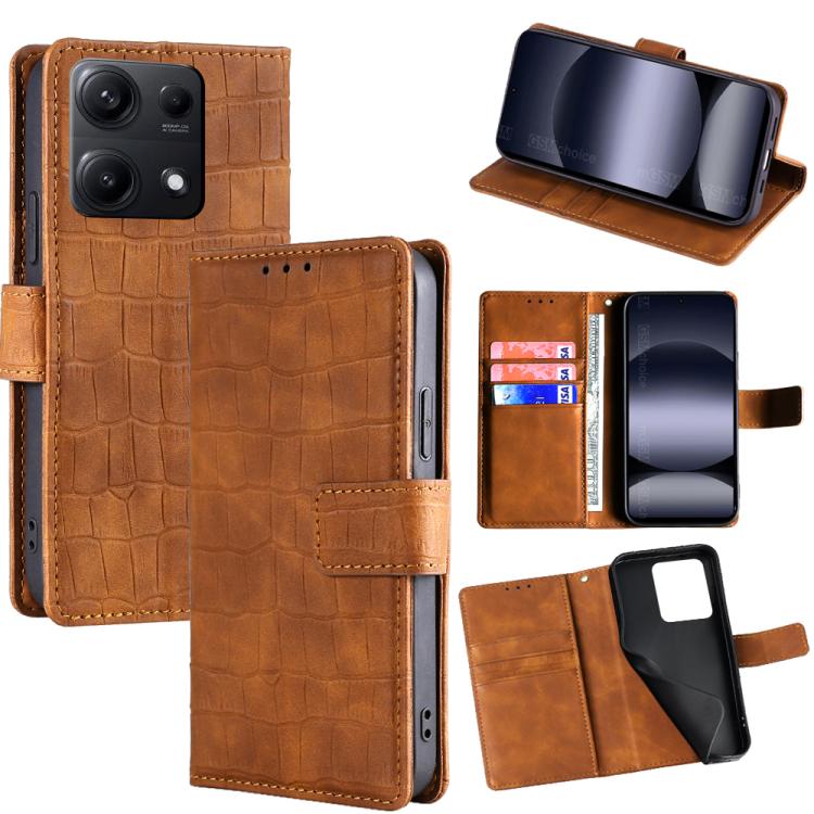 Funda de piel con cierre magnético y diseño de cocodrilo para Redmi Note 14S 4G (marrón)