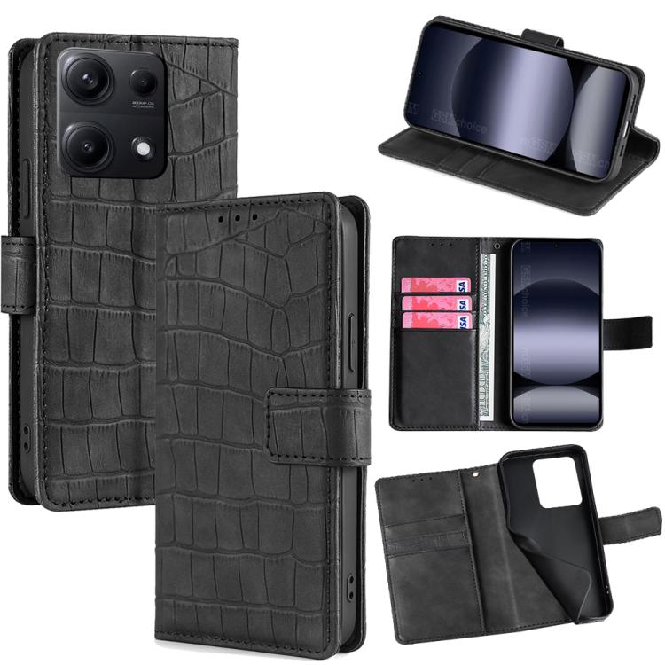 Funda de piel con cierre magnético y diseño de cocodrilo para Redmi Note 14S 4G (negra)