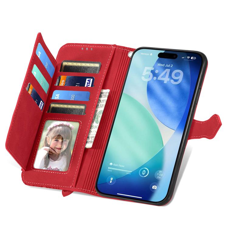Funda de piel con cremallera y diseño floral en relieve para iPhone 17 Pro Max (roja)