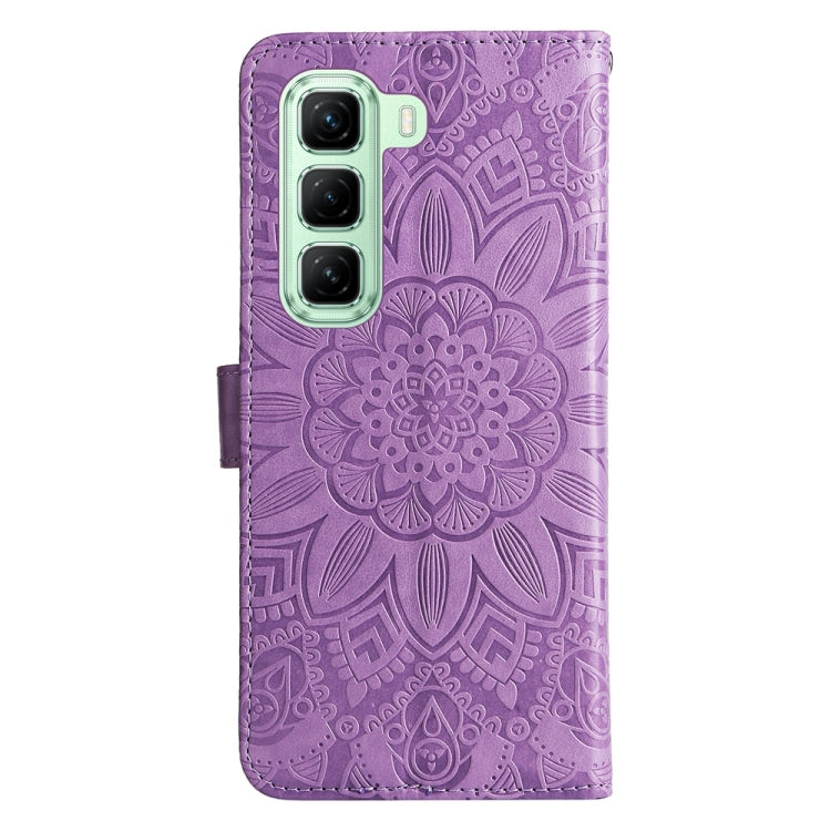 Funda de Piel con Estampado de Girasoles en Relieve para Infinix Hot 50 5G (Morado)