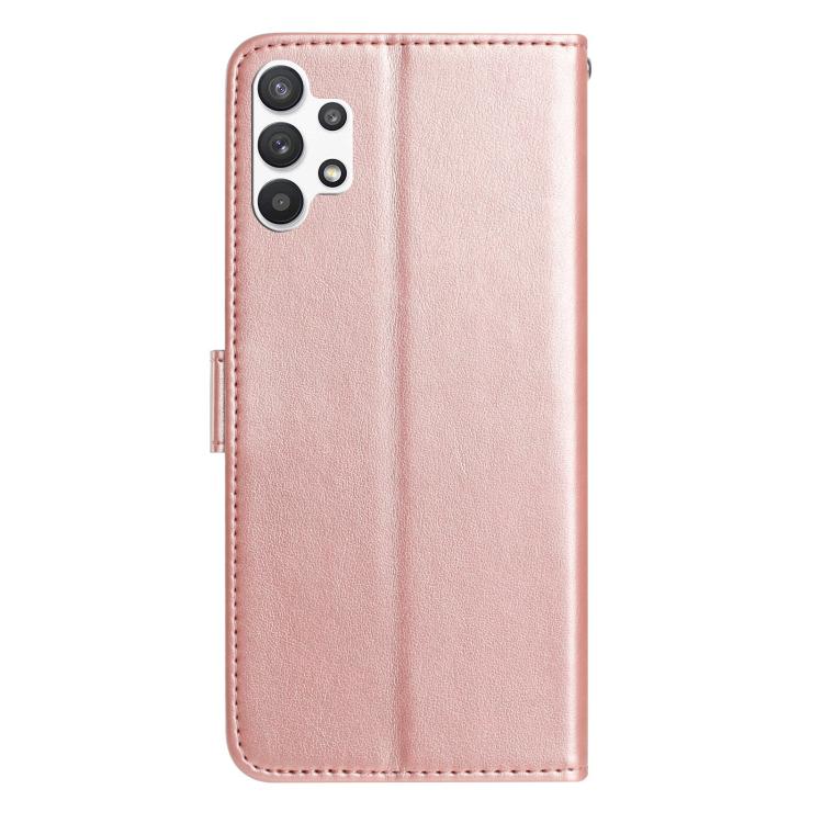 Funda de piel con estampado floral en relieve para Samsung Galaxy A32 (oro rosa)