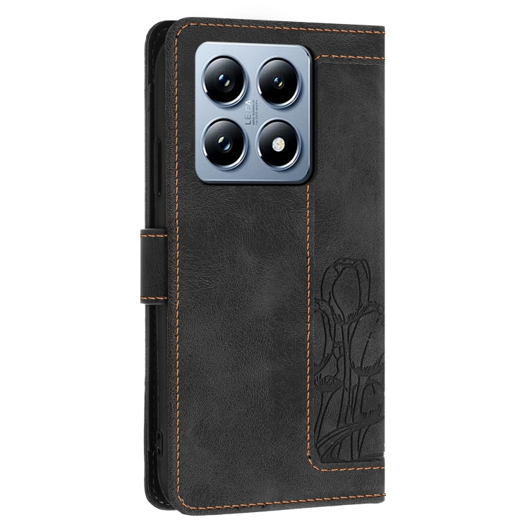 Funda De Piel Con Relieve De Tulipanes Para Xiaomi 14T Con Cordón (Negro)