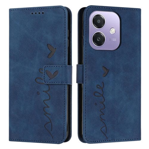 Funda de Piel con Relieve En Forma de Corazón para Oppo A3X 5G (Azul)