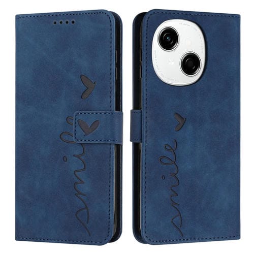 Funda de Piel con Relieve Corazón para Tecno Spark Go 1 (Azul)