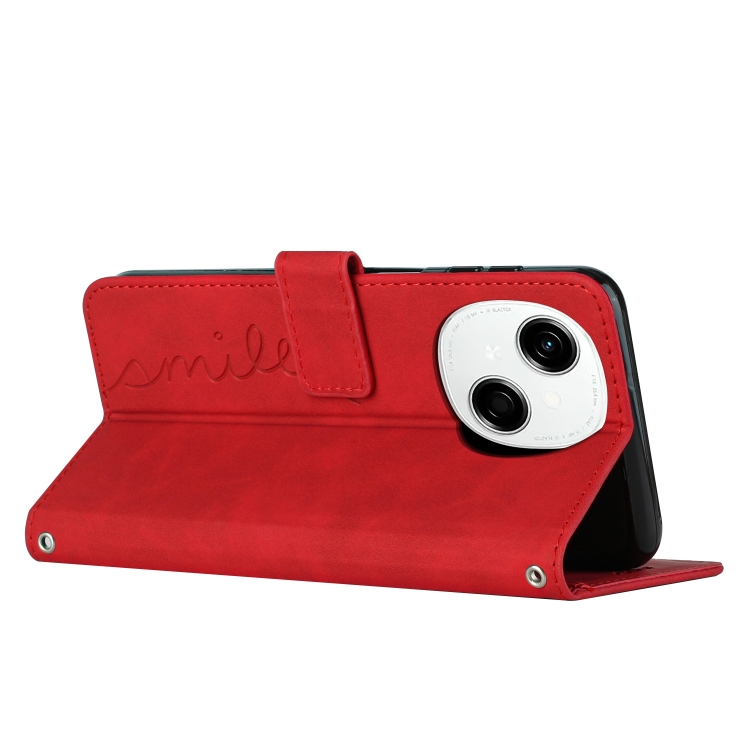 Funda de Piel con Relieve Corazón para Tecno Spark Go 1 (Rojo)