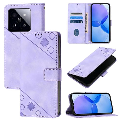 Funda De Piel Con Relieve Para Teléfono Xiaomi 14 Pro Skin Feel (Morado Claro)