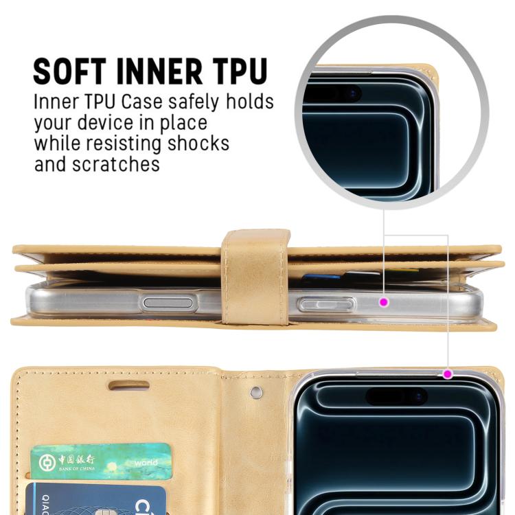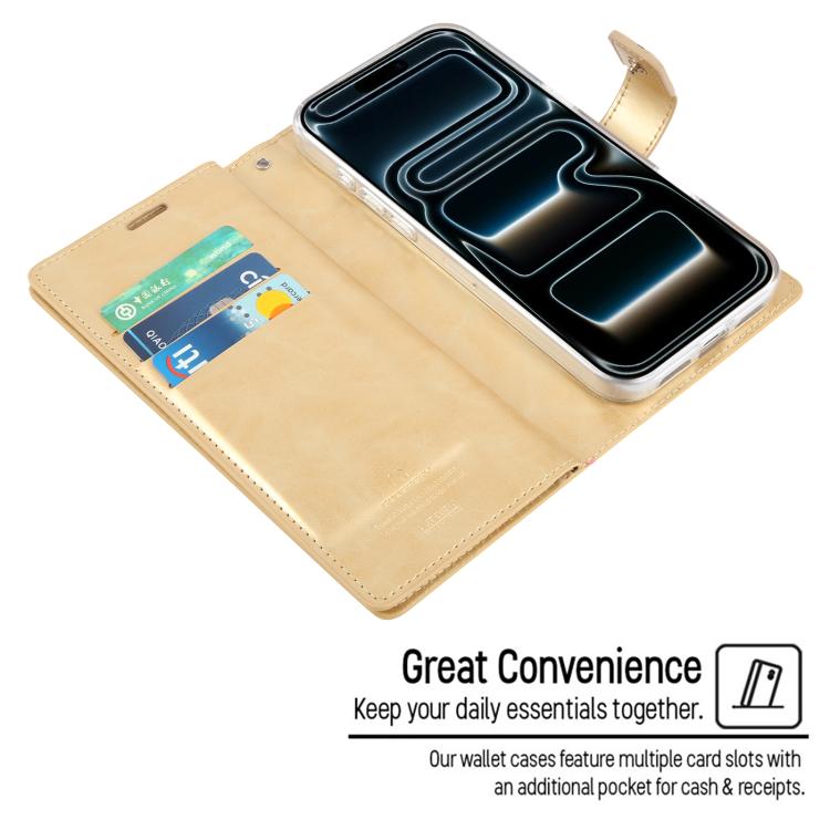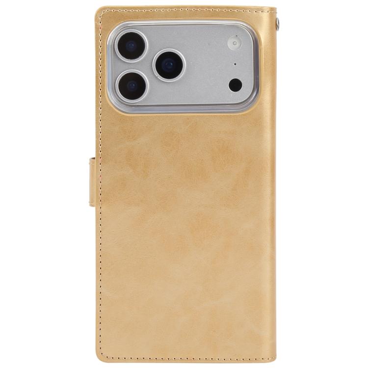 Funda de piel GOOSPERY MANSOOR DIARY para iPhone 17 Pro con 9 ranuras para tarjetas (dorada)