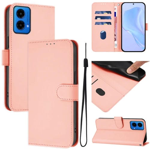 Funda de Piel Sintética con Cordón para Motorola Moto G45 5G y G34 5G (Rosa)