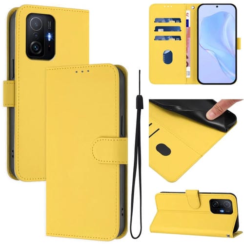 Funda de Piel Sintética con Cordón para Xiaomi 11T/11T Pro (Amarillo Limón)