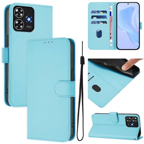 Funda de Piel Sintética con Cordón para ZTE Blade A73 4G (Azul Cielo)