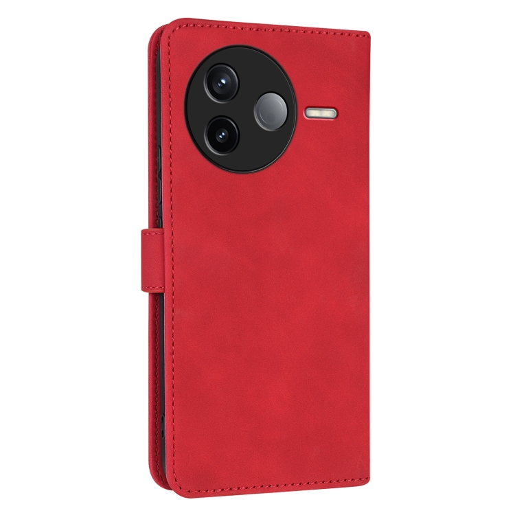 Funda de Piel Sintética con Tapa y Textura de Piel de Becerro para Redmi K80 Azns (Rojo)