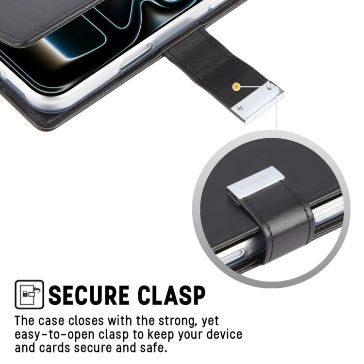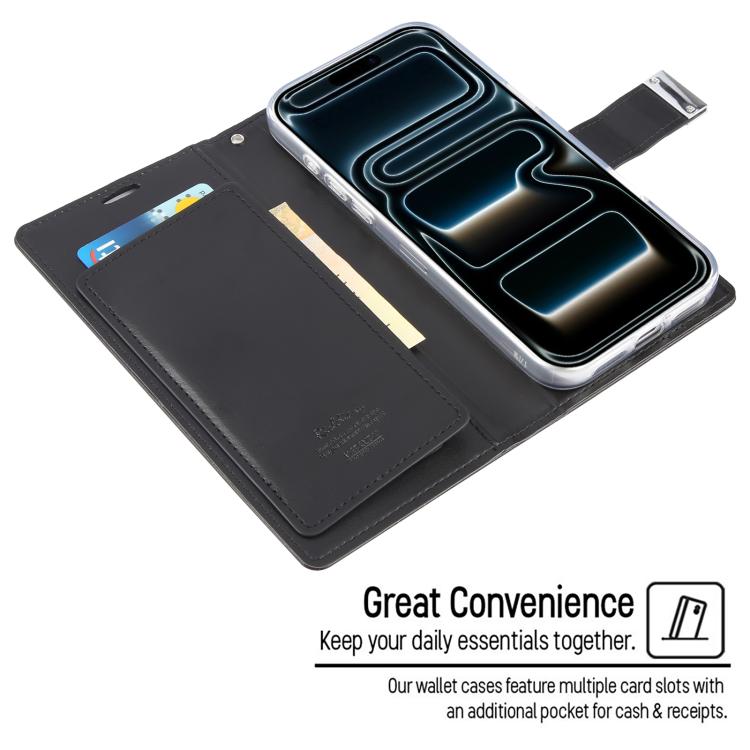 Funda de piel texturizada Crazy Horse GOOSPERY RICH DIARY para iPhone 17 Pro (negra)