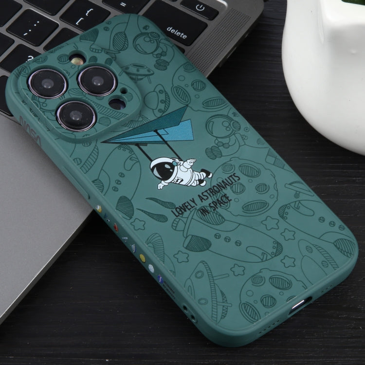 Funda de Silicona iPhone 16 Borde Recto Diseño Astronauta (Verde)