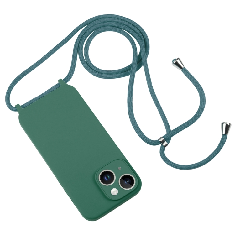 Funda de silicona líquida con cordón cruzado para iPhone 15 Plus (Verde Esmeralda)