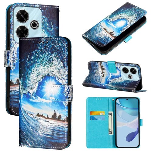 Funda de Teléfono de Cuero con Patrón de Dibujo de Colores de Tejido Liso para Xiaomi Redmi 13 4G (Ondas y Sol)