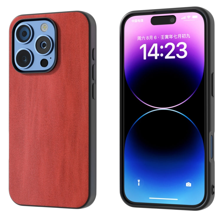 Funda de teléfono PU iPhone 16 Pro textura becerro dos colores marco negro (Rojo)