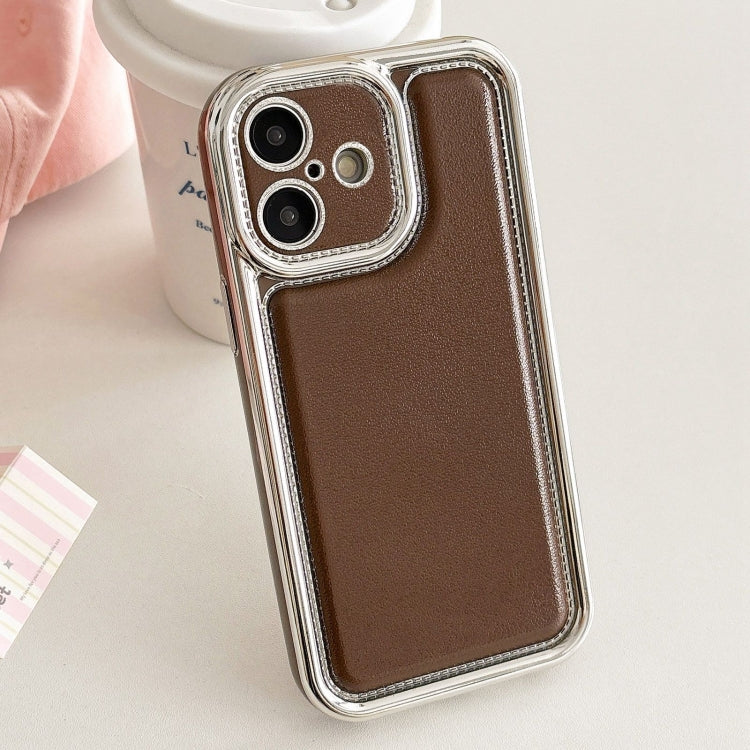 Funda de teléfono TPU con borde galvanizado y acabado esmerilado para iPhone 16 (Café)