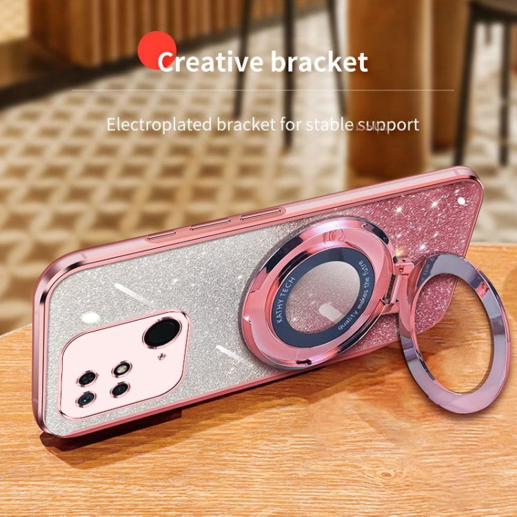 Funda de Teléfono de TPU con Soporte Redondo y Purpurina Degradada Chapada En India para Redmi 10C / 10 2022 (Azul Sierra)