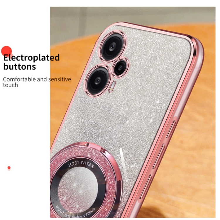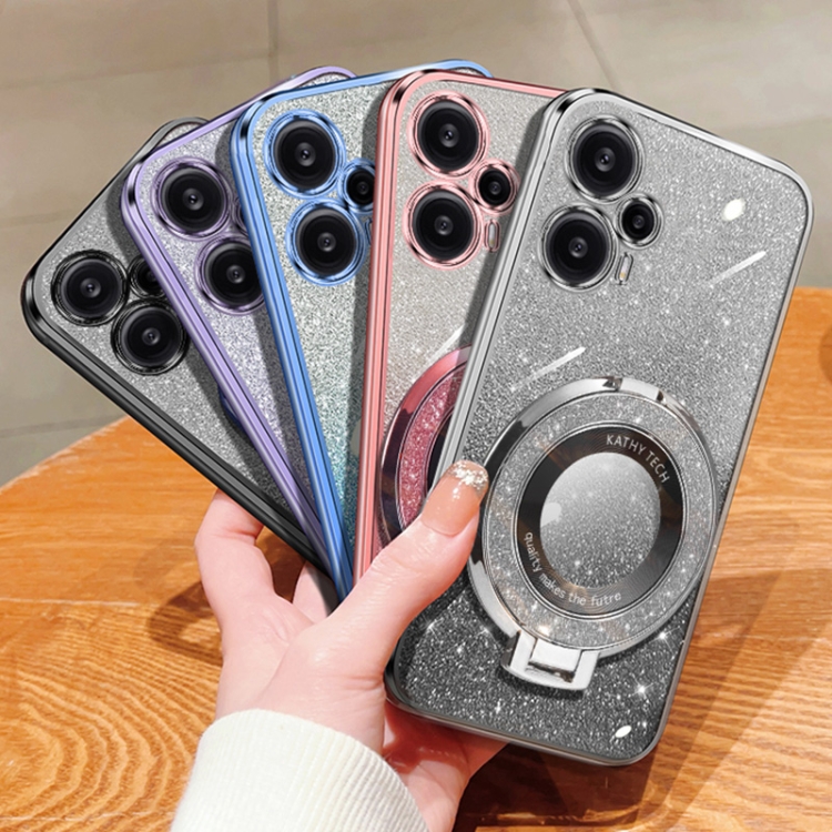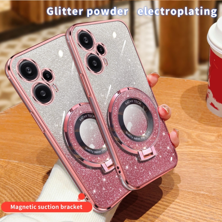 Funda de Teléfono de TPU con Soporte Redondo y Purpurina Degradada Chapada En Turbo para Redmi Note 12 (Rosa)