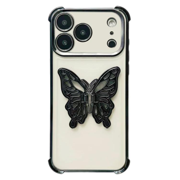 Funda de TPU con diseño de mariposa 3D galvanizada para iPhone 17 Pro Max (negra)