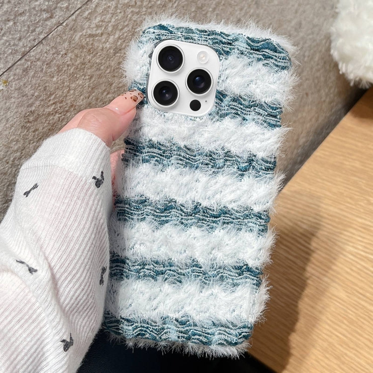 Funda TPU Felpa con Tejido a Rayas para iPhone 16 Pro (Verde)