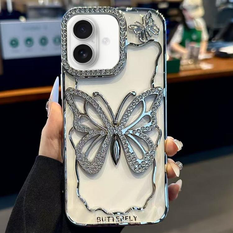Funda de TPU galvanizada con diseño de mariposa hueca para iPhone 17 (plateada)