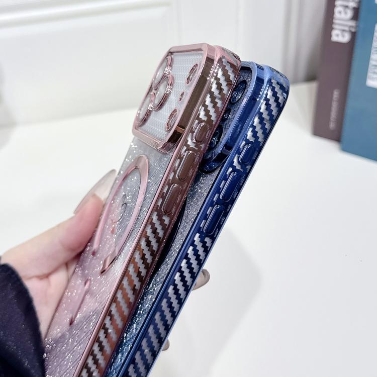 Funda de TPU MagSafe con textura de fibra de carbono y degradado de hojas para iPhone 17 Pro (negra)