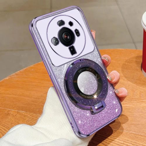 Funda de TPU para Teléfono Xiaomi 12S Ultra con Soporte Redondo y Purpurina Degradada (Morado)