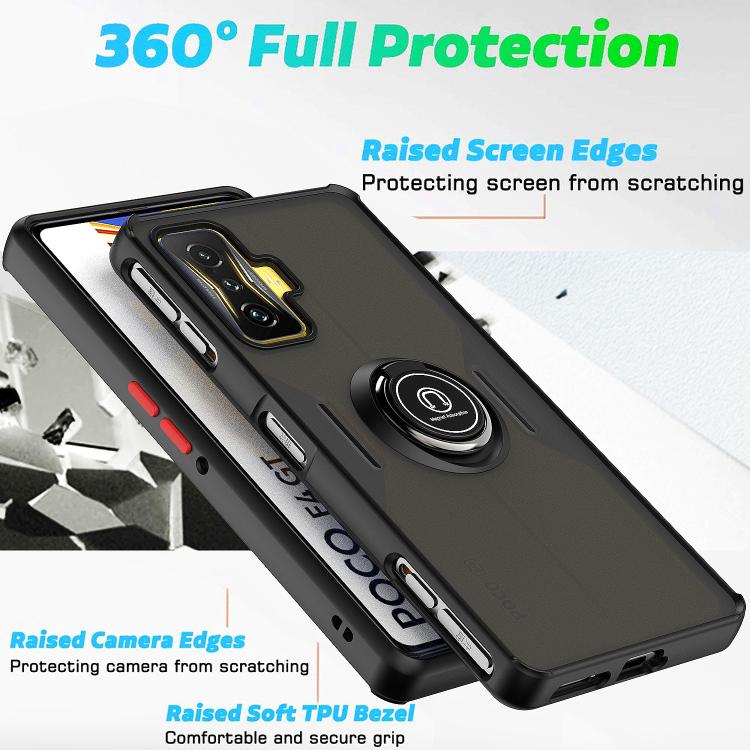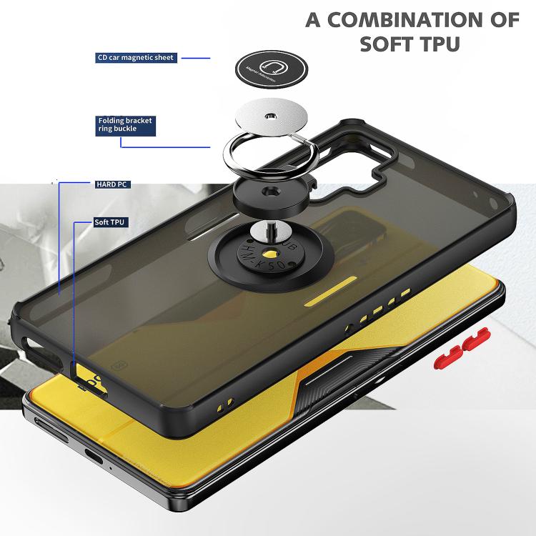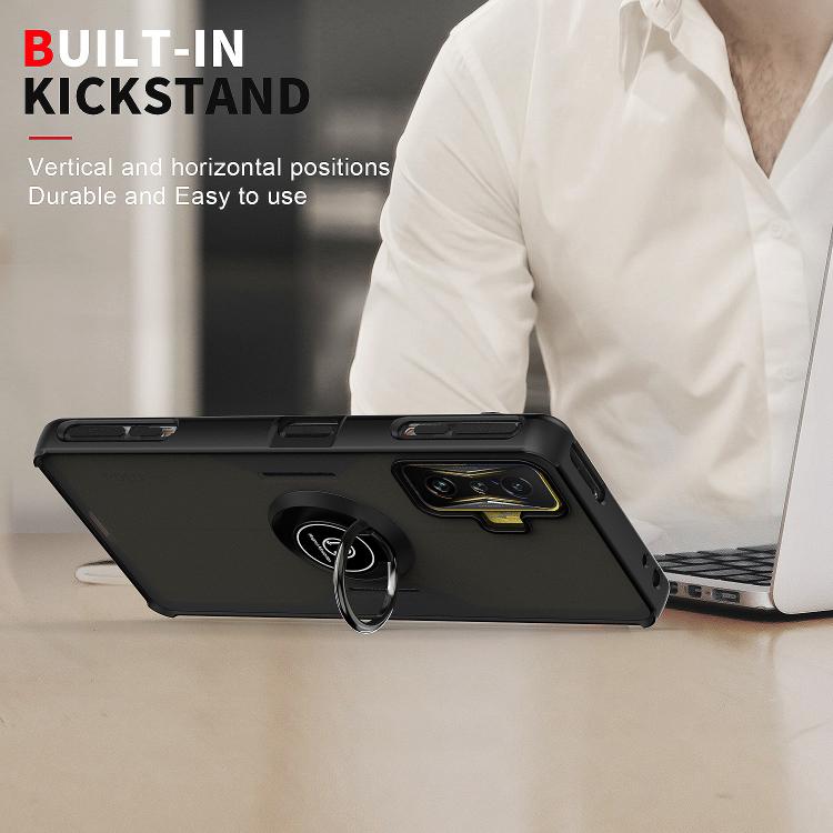 Funda de TPU + PC con anillo para Xiaomi Poco F4 GT Q Shadow 1 Series (verde militar)