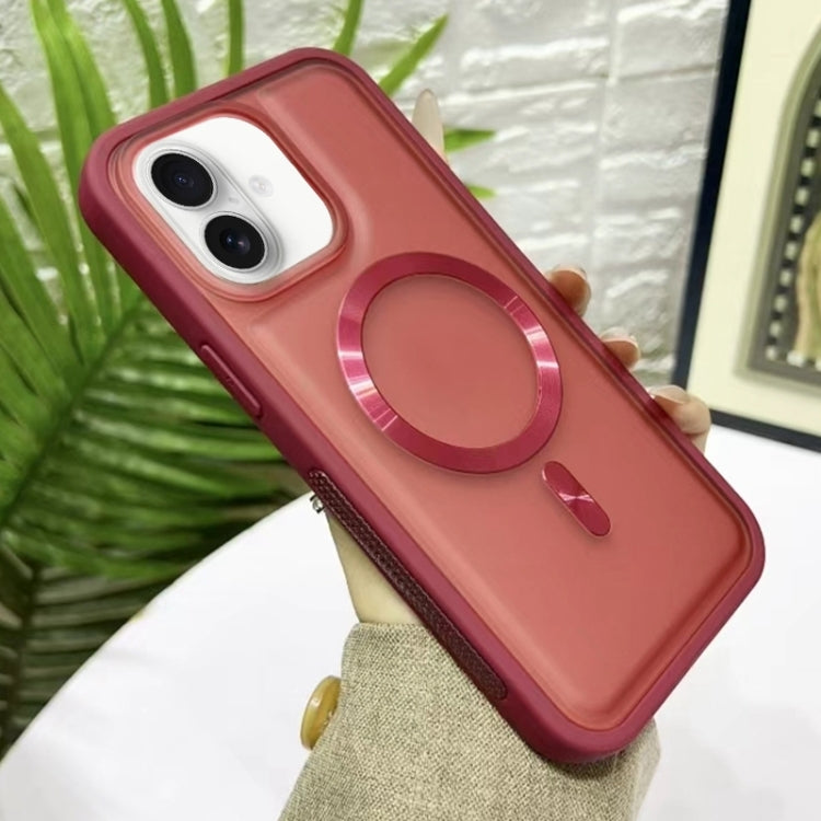 Funda híbrida de silicona acrílica Magsafe para iPhone 16 (Roja) 3 En 1