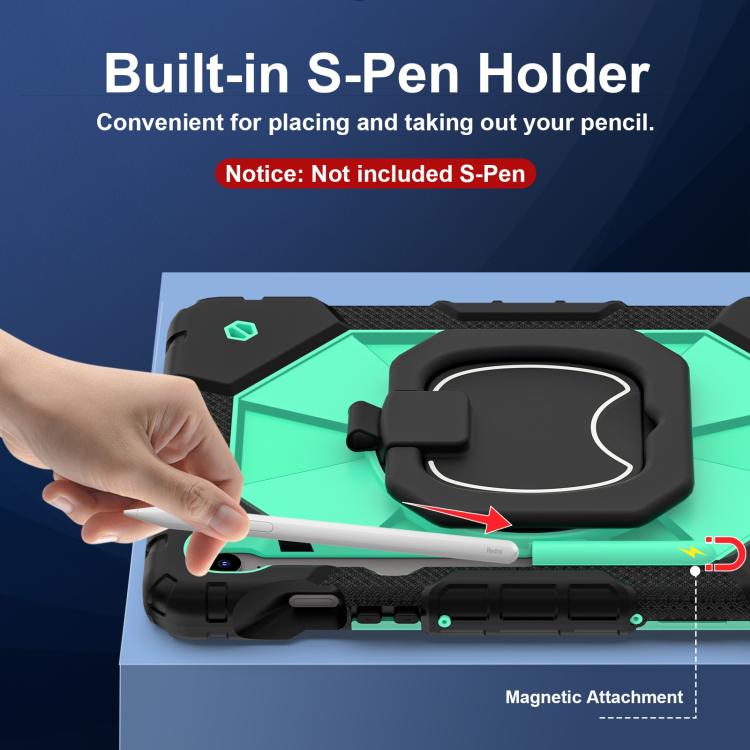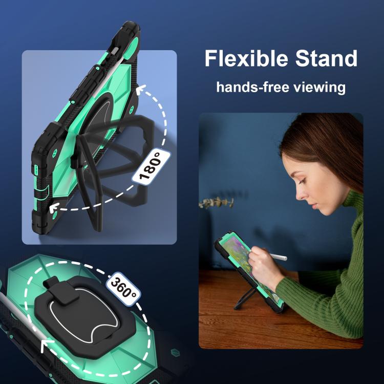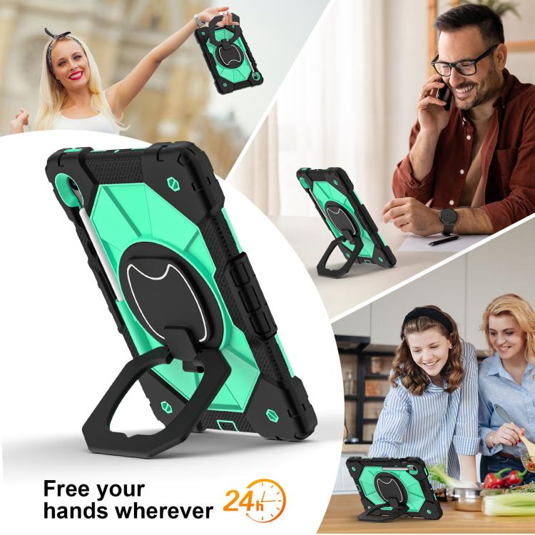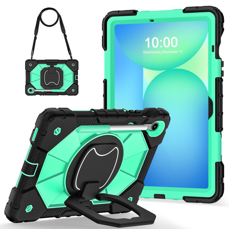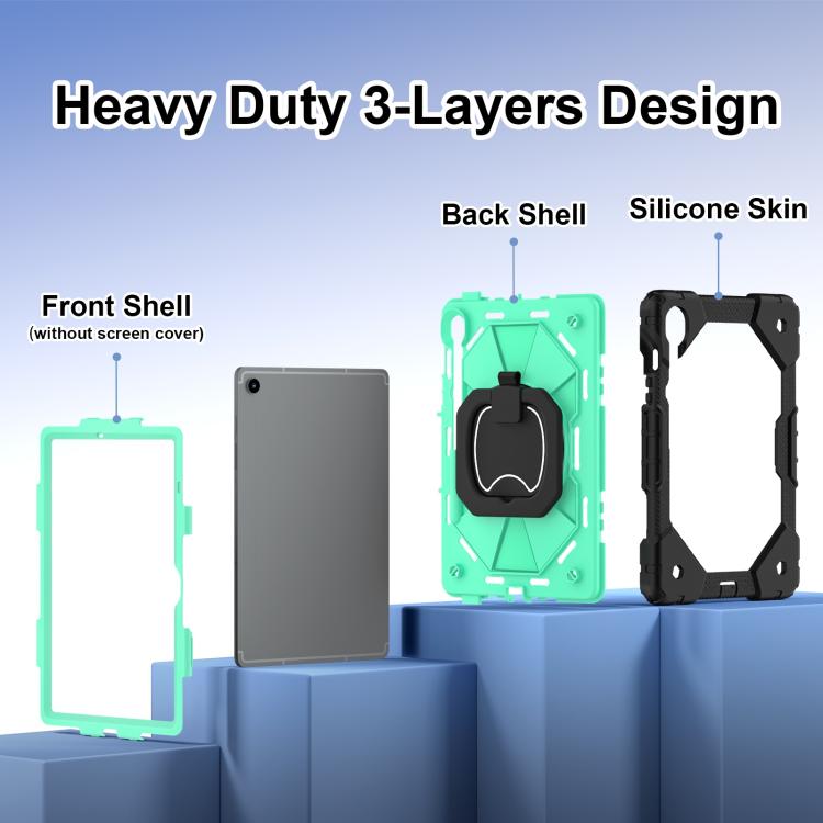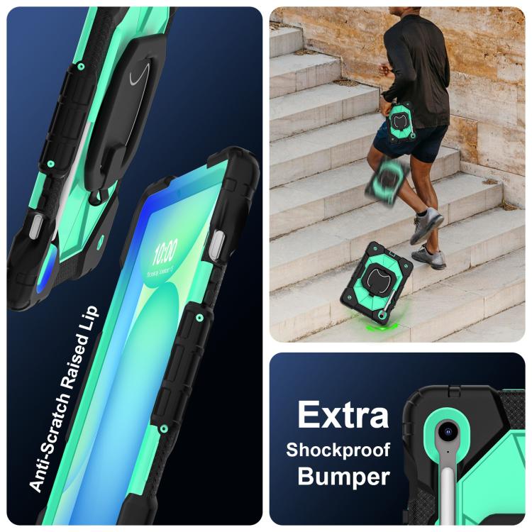 Funda híbrida de silicona con diseño de robot para Samsung Galaxy Tab S10 FE/S9 (negro y verde menta)