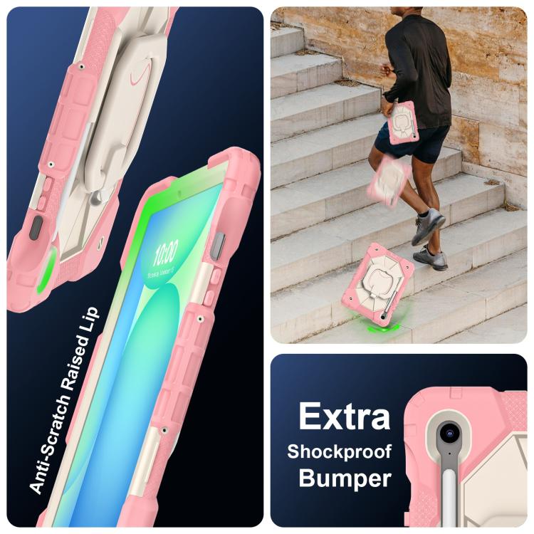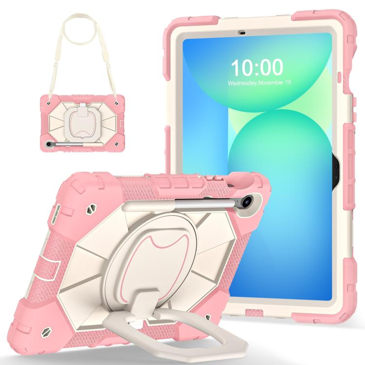Funda híbrida de silicona con diseño de robot para Samsung Galaxy Tab S10 FE/S9 (oro rosa y beige)
