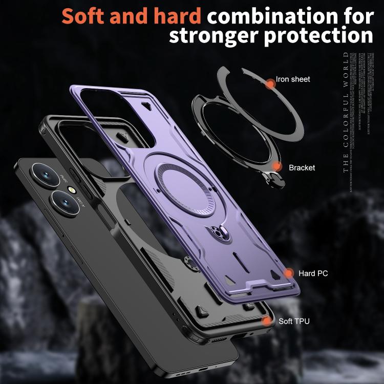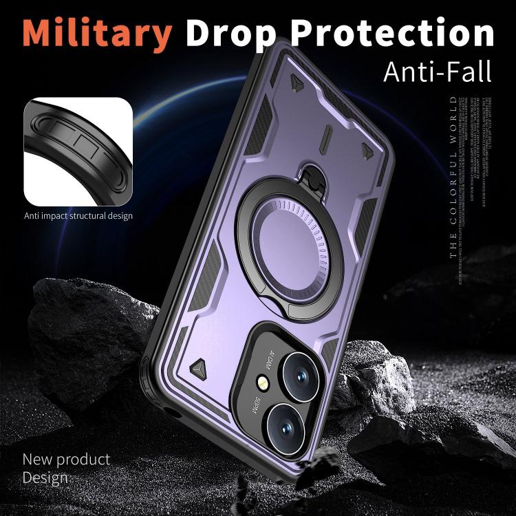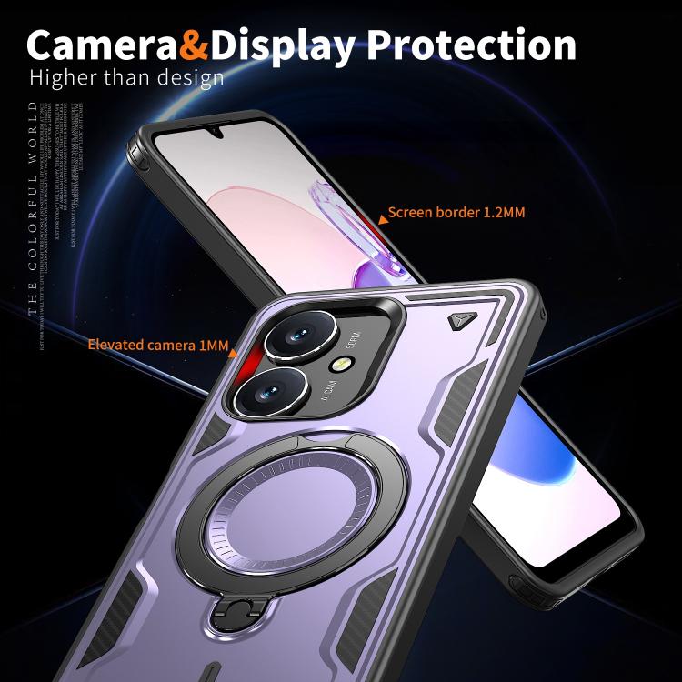 Funda híbrida de TPU con soporte de anillo MagSafe para Redmi 13C 5G (morada)