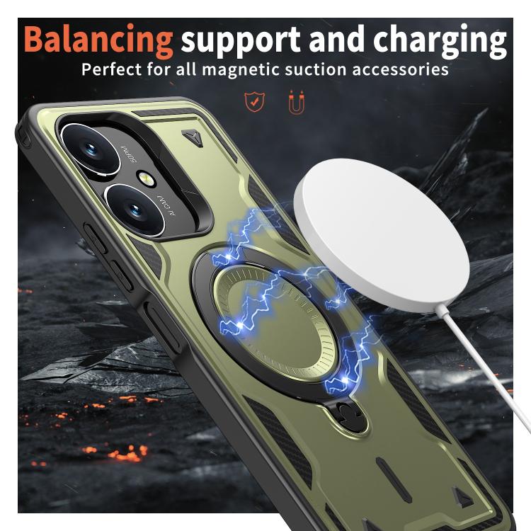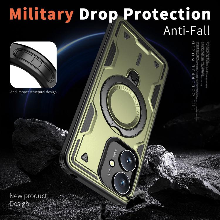Funda híbrida de TPU con soporte de anillo MagSafe para Redmi 13C 5G (verde oliva)