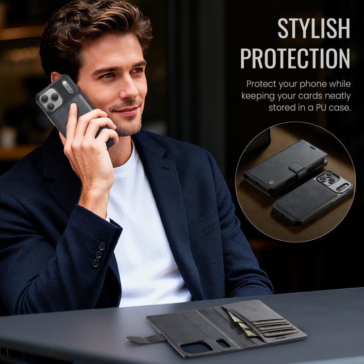 Funda magnética MagSafe AutSpace A05 2 en 1 con textura de piel de becerro retro para iPhone 17 Pro Max (negra)